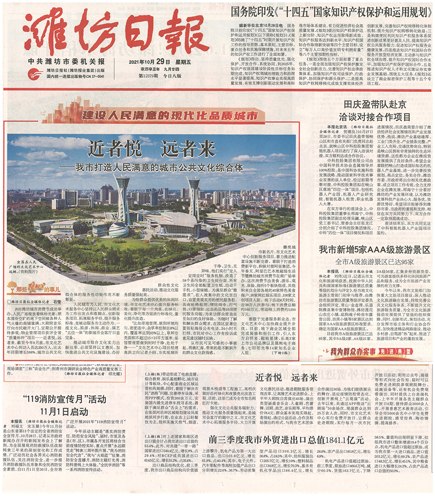 10月29日,濰坊日報對我公司服務(wù)管理的濰坊市文化藝術(shù)中心項目進(jìn)行了頭版報道,現(xiàn)就我公司服務(wù)管理的大型公共建筑項目做如下介紹: 近年來,伴隨經(jīng)濟(jì)的快速發(fā)展,居民文化水平、收入水平不斷增加,消費需求不斷升溫,進(jìn)而帶動文化、娛樂、交通等公眾場館物業(yè)服務(wù)的需求逐年增加,